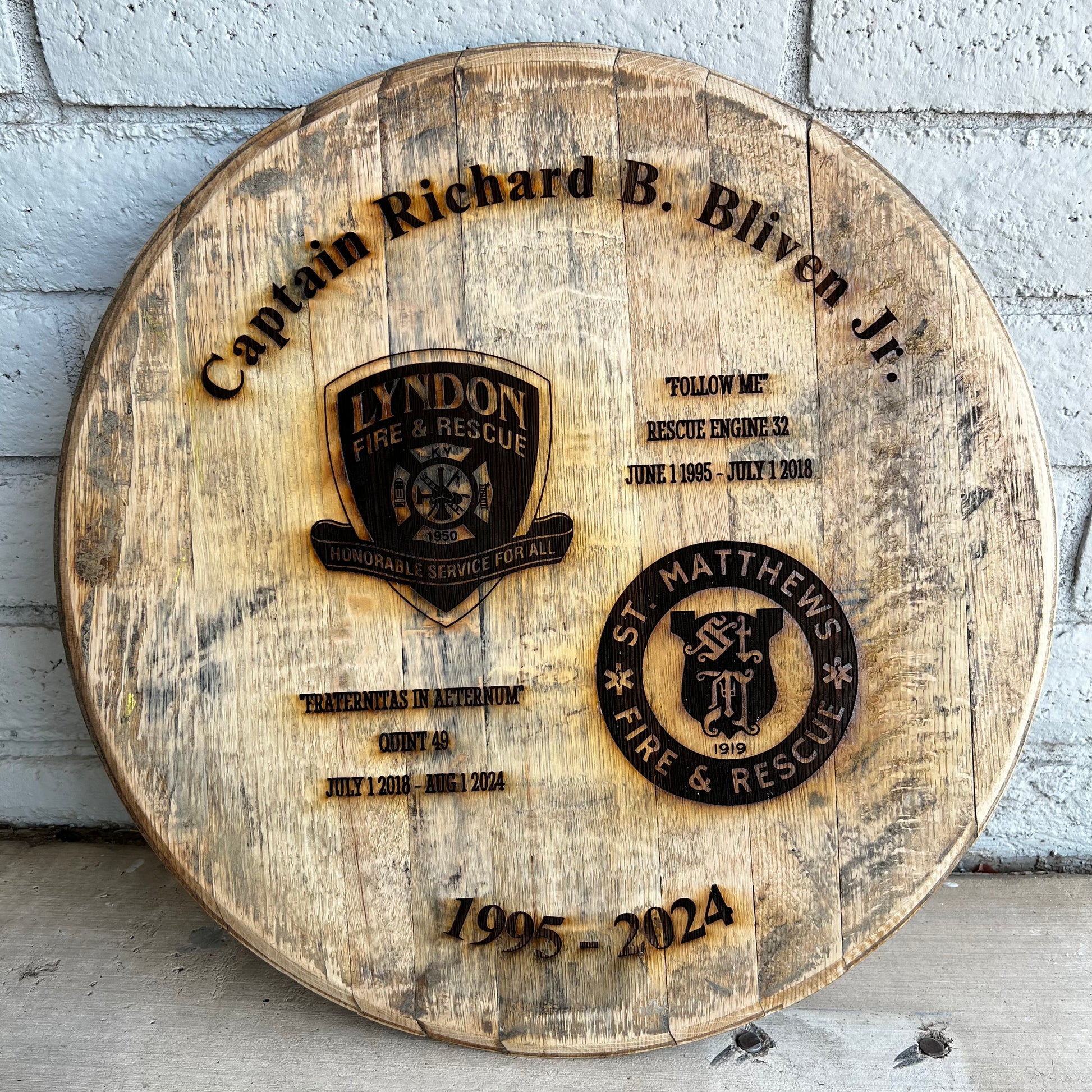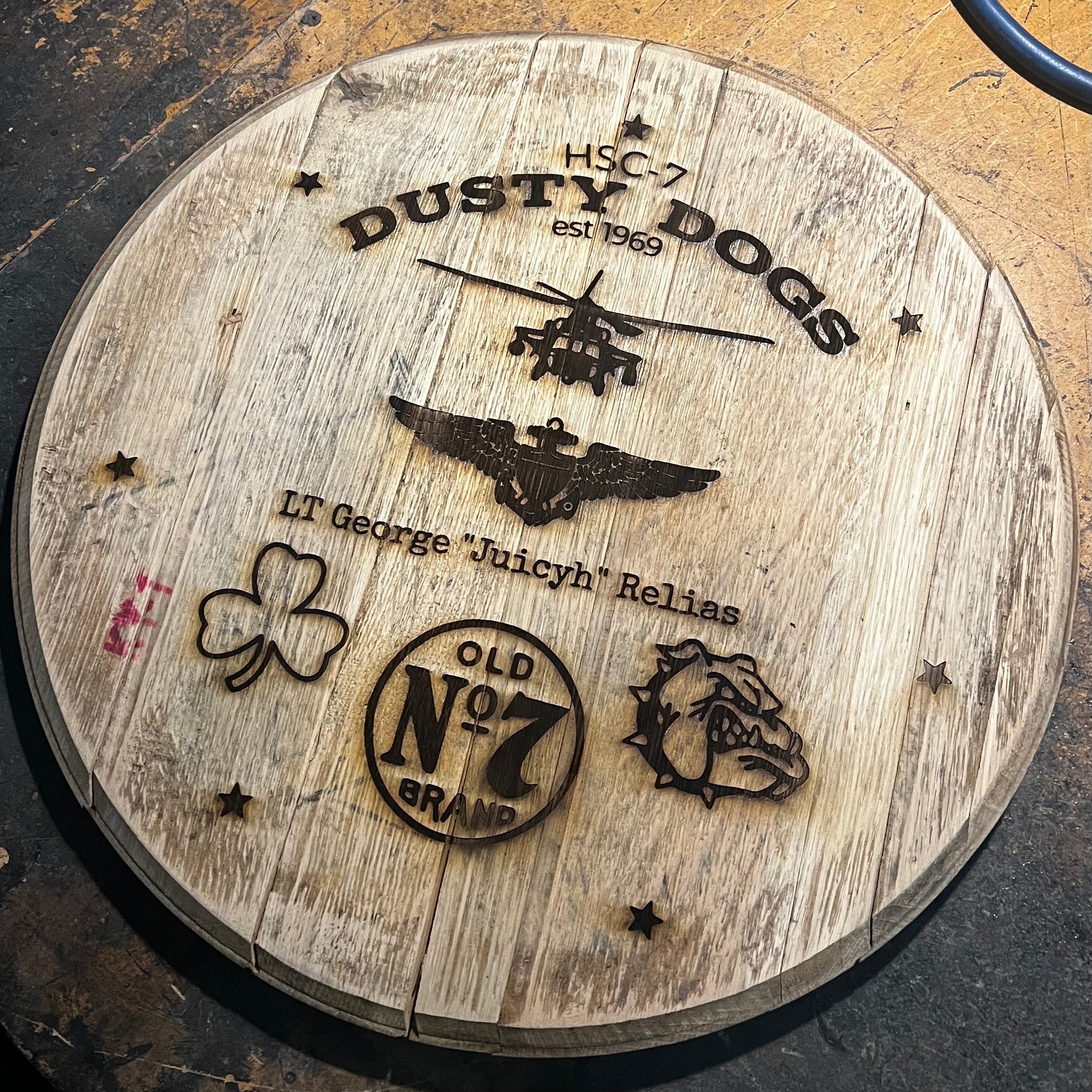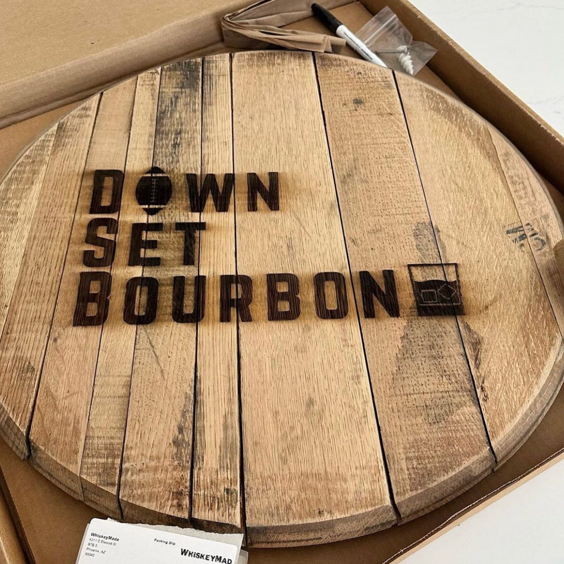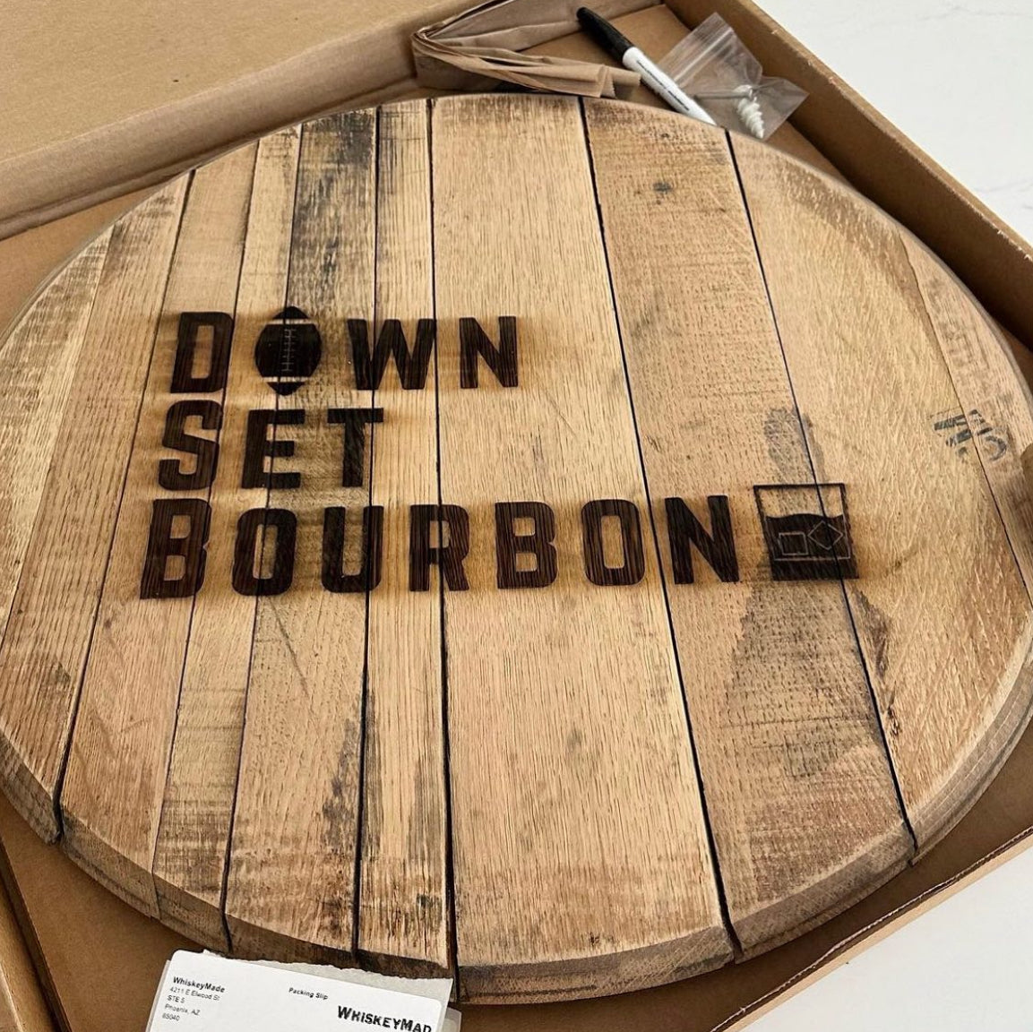 Unleash your bold and adventurous spirit with our Bourbon Barrel Sign. Crafted from real bourbon barrels and personalized with your chosen design, this 21" diameter sign is the perfect addition to any space. Embrace the challenge and make a statement with this unique and striking piece!