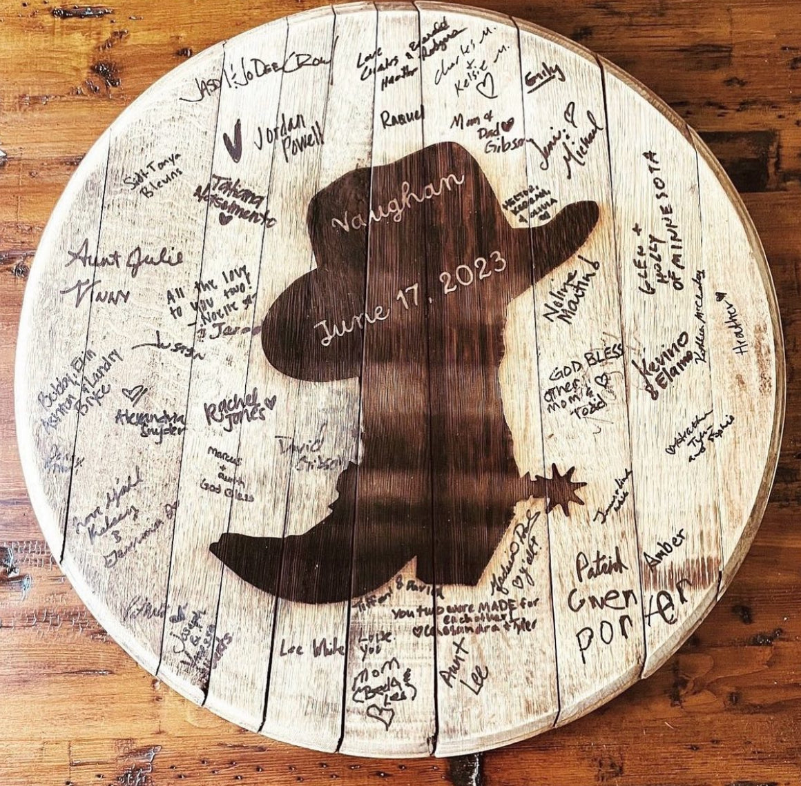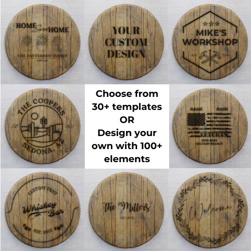 Perfect for any rustic vibe - Lasts a lifetime. Made from 100% upcycled bourbon barrels and laser engraved with your personal details.